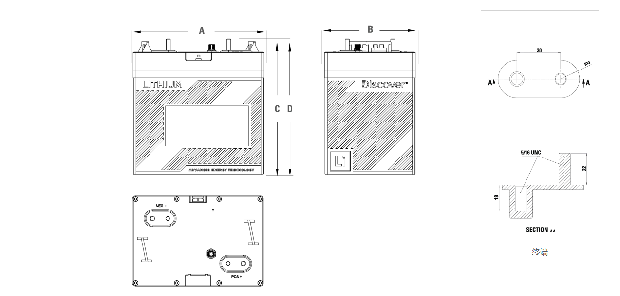 DLP-GC2-12V 锂专业电池 Discover®LITHIUM PROFESSIONAL LiFePO 4电池型号专门用于替换和适合 BCI 6V、8V 和 12V (GC) 电池的标准分组。LITHIUM PROFESSIONAL 电池采用专有的大电流 BMS,可提供卓越的峰值功率以及闪电般快速的 1C 连续充电和放电率,此外它们还具有冷充电功能,允许从 -20⁰C / -4⁰F 开始进行低温充电。经过最高安全、性能和运输标准的独立测试,单个电池将完成许多铅酸电池的工作,并且与铅酸电池不同的是,它可以在部分充电状态 (PSOC) 下连续运行而不会降低性能。