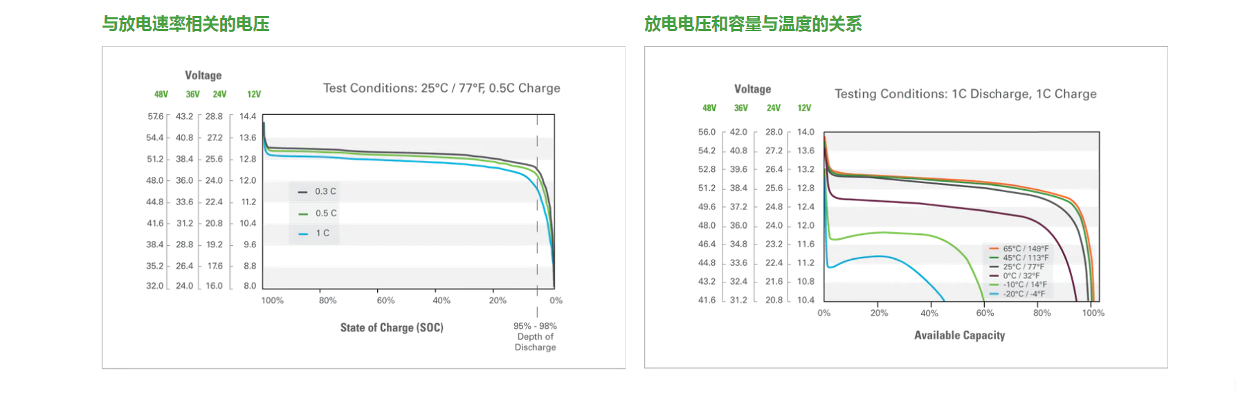 注意:在设计用于最高工作温度的系统时,必须额外考虑放电深度、工作电压和电流。